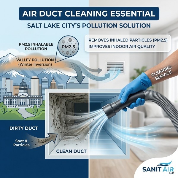When these pollutants are trapped, they don’t simply stay outdoors. Every time a door opens or a window is cracked, microscopic particles enter the home. More importantly, the constant cycling of an HVAC system pulls this outdoor air in. Over months and years, the ductwork in a standard home becomes a collection chamber for these environmental hazards. Dust, soot, and chemical particulates settle into the crevices of the ventilation system. Because Sanitairllc provides air duct cleaning salt lake city, residents have a direct resource to combat this buildup, ensuring that the “bowl” effect of the valley doesn’t turn their own home into a trap for stagnant pollutants.